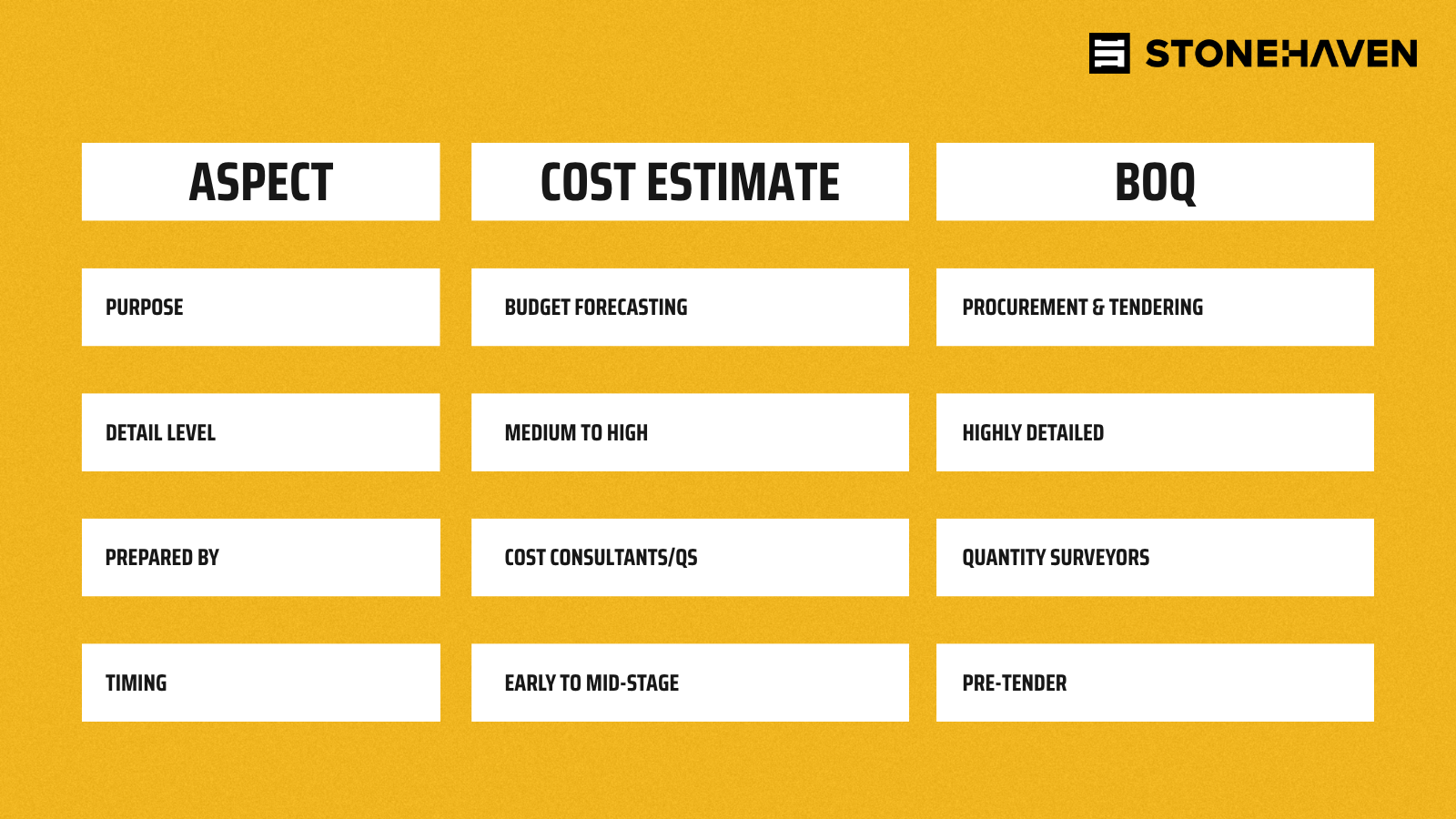 Cost Estimate vs Bill of Quantities (BOQ)